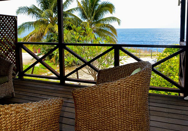 Located in the quiet end of Settlement. Privacy amongst lush tropical surrounds. Ocean or garden views, air con, fan-cooled, mini fridge, kettle, alarm clock, phone. Wi-Fi available to buy. Max 2 guests per room.