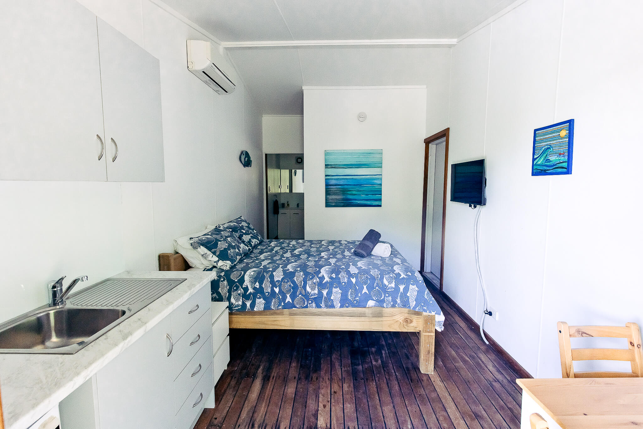 This one bedroom studio apartment with queen bed, kitchenette, ensuite, air-conditioning, WIFI and smart TV is a comfortable place to relax and put your feet up at the end of the day. Attached to a family home with private entrance, Studio 42 is a short stroll from the beach, airport, Cocos Club, supermarket, café, restaurant, and tourism information office.